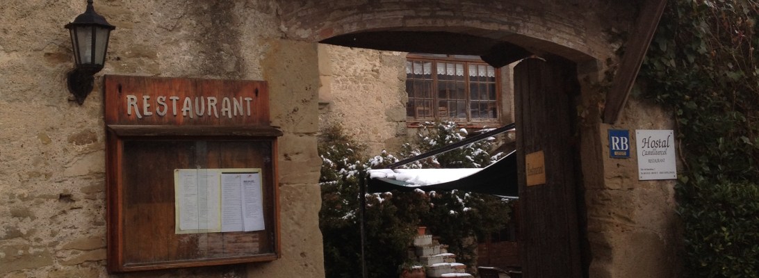 El sol lluia fort avui al migdia al Moianès després de la jornada siberiana d’ahir, i ja poca neu quedava als marges de les carreteres i sols es veia el record blanc a les parts més obagues. L’aire era glaçat però el sol escalfava de valent, però és dijous i no ens entretenim a fora i ja entrem directes al menjador de la popular casa safajenca.